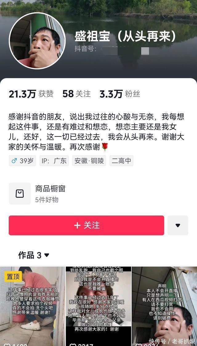 根据黑客网友爆料,他发现燕冬萍常年有开房史,这让全网更加痛恨燕冬萍,觉得她不仅坑丈夫的钱,还出轨背叛婚姻,不守妇道。让人所不齿。 舆论汹涌,燕冬萍在网络世界里,已经跟潘金莲相提并论了。 当然,在铺天盖地的怒骂声中,也有一些网友表达了不同看法,他们认为,丈夫说每个月给八千,并没有拿出证据出来,他最终放弃拿出证据,也导致燕冬萍赢下了官司。同时,黑客曝光燕冬萍的开房记录,无论是不是真的,都涉嫌违法。 这些网友还认为,如果丈夫真爱孩子,燕冬萍不守妇道,贪得无厌,他不应该放弃孩子的抚养权。 一时之间,纷纷扰扰,谁也说不清。 就在这个节骨眼,燕冬萍的前夫盛祖宝开通了抖音,从昨天到现在,他发布了三条抖音。主要目的是跟大家澄清离婚案子发生在好几年前,他现在过得很好,这是他唯一的账号,希望大家不要给那些虚假的账号打赏。 还是那个温暖好人啊。 在老盛的描述中,我们看到了一个重要细节!